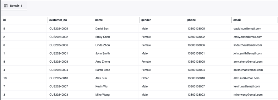 SELECT * FROM "salsedb"."customer" LIMIT 10;