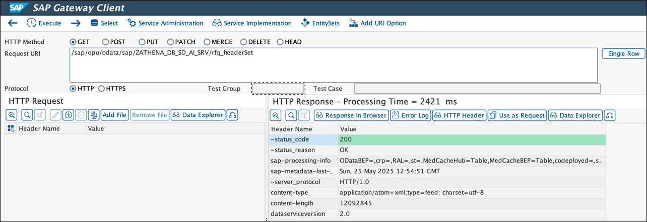 图6 SAP Gateway Client测试服务发布状态