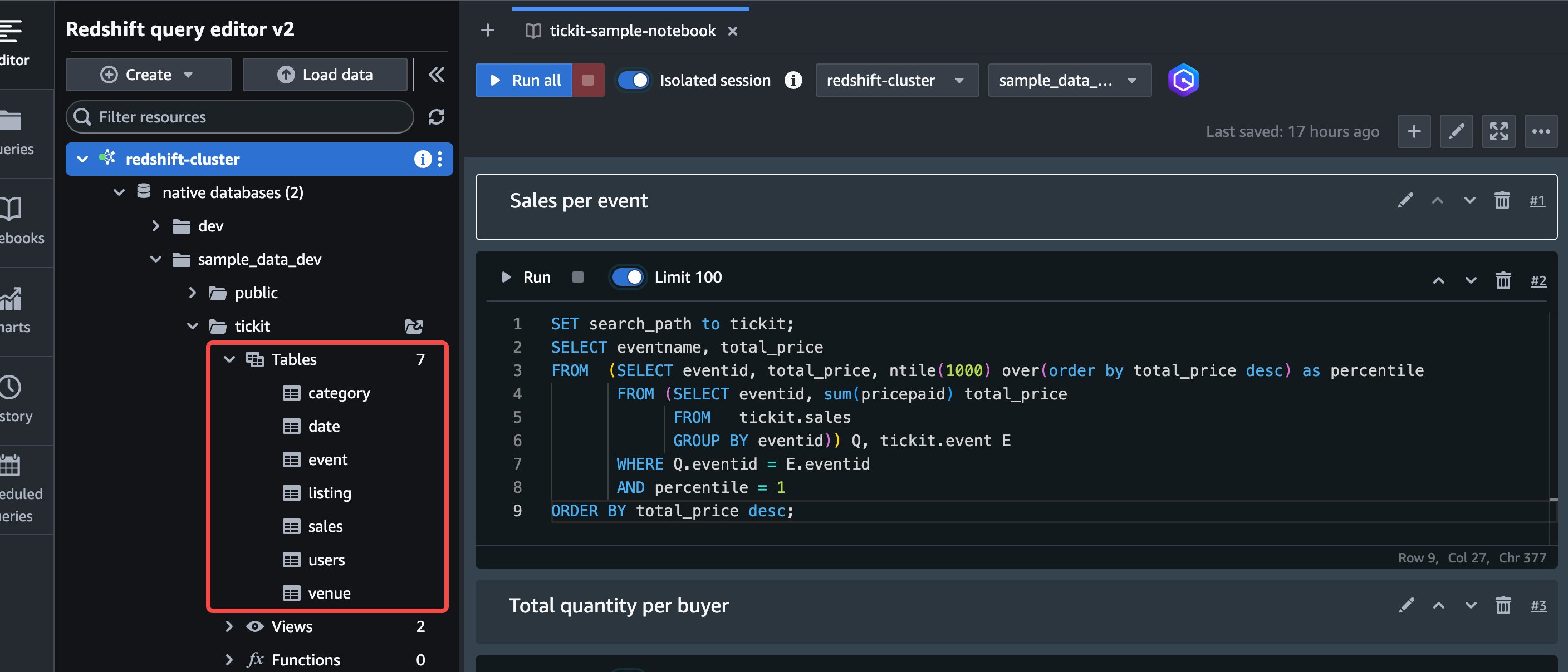 准备 Redshift 集群,并导入 TICKIT sample_data