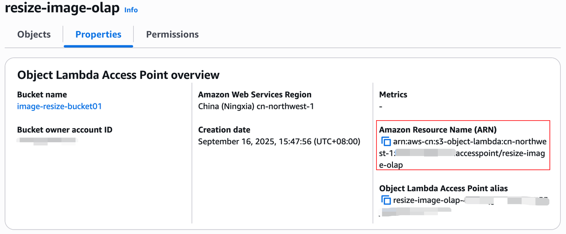 - 创建Object Lambda Access Point, name 设为 resize-image-olap