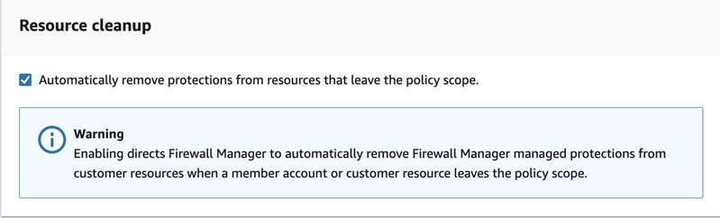 点选,当 resource 不在 policy scope 中的定义,将自动移除 Firewall Manager 所做的配置。