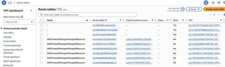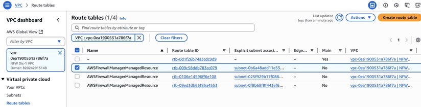 每个 VPC 中都被单独创建了 NFW EP 的子网和路由表