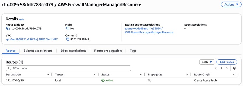 3. Firewall Manager 只创建 NFW 和 EP ,具体 EP 所在子网的路由表中的路由信息,需要用户自己编辑填写。