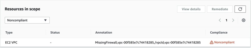 新添加的 VPC 的 ID 与如下异常检测的 VPC ID 匹配,也就是新的添加的 VPC trigger 了 AWS rules 发现它没有配置 / 符合 Firewall Manager rules 的定义。