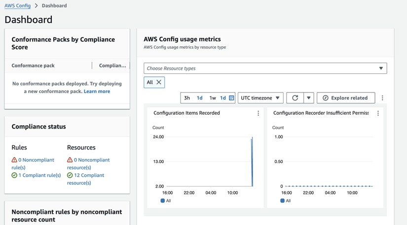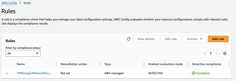 AWS Config 的界面中再次观察 Rules 变为 Complaint ,这个过程是自动化完成的。