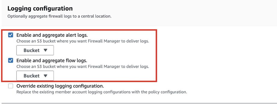 在这里配置的 alert 或者 flow 的 log 目标只能是 S3 桶,所以如果有特别配置要求,此处可以留空,进入到具体创建好的 NFW 中再去打开并配置比如发往 Cloudwatch 或者 Kinesis 。