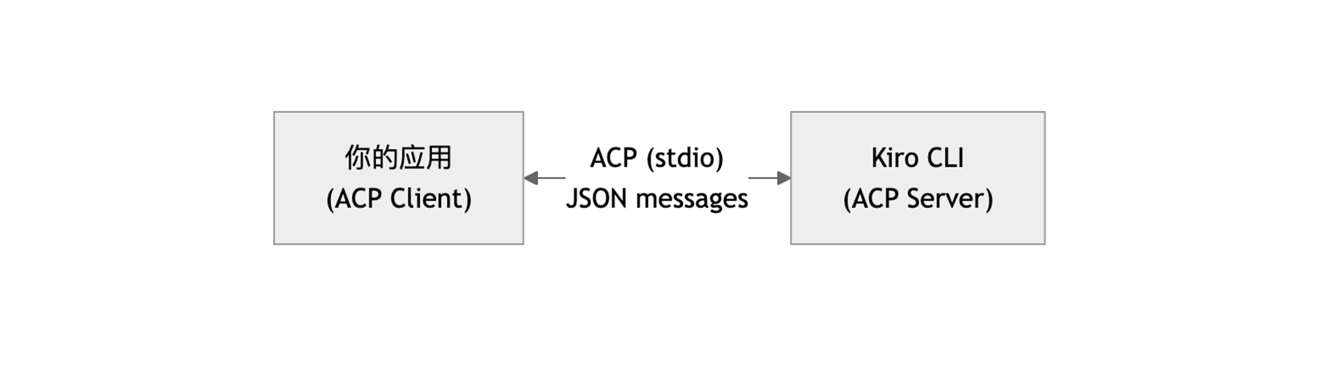 该协议运行在 stdio(标准输入/输出)之上,非常轻量且易于集成。你只需启动一个 Kiro CLI 进程,通过 stdin/stdout 交换 JSON 消息,就拥有了一个功能完整的 Agent。