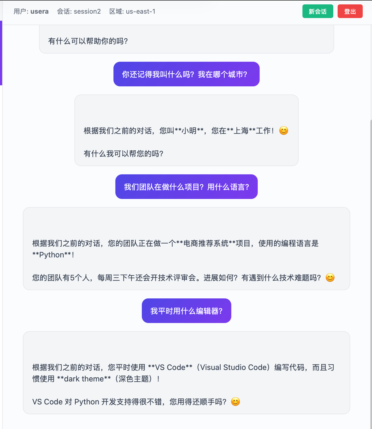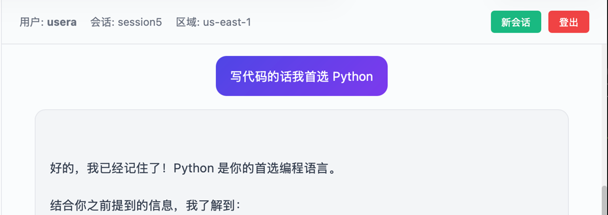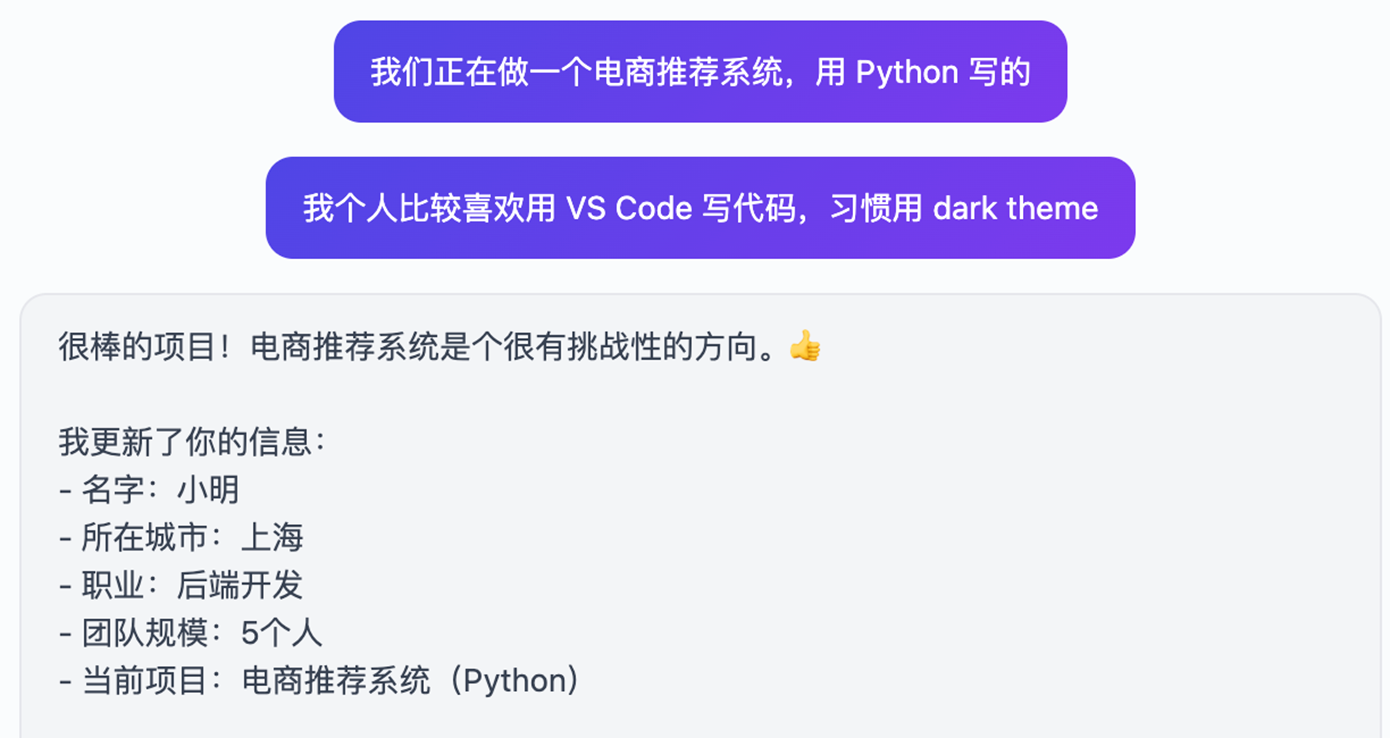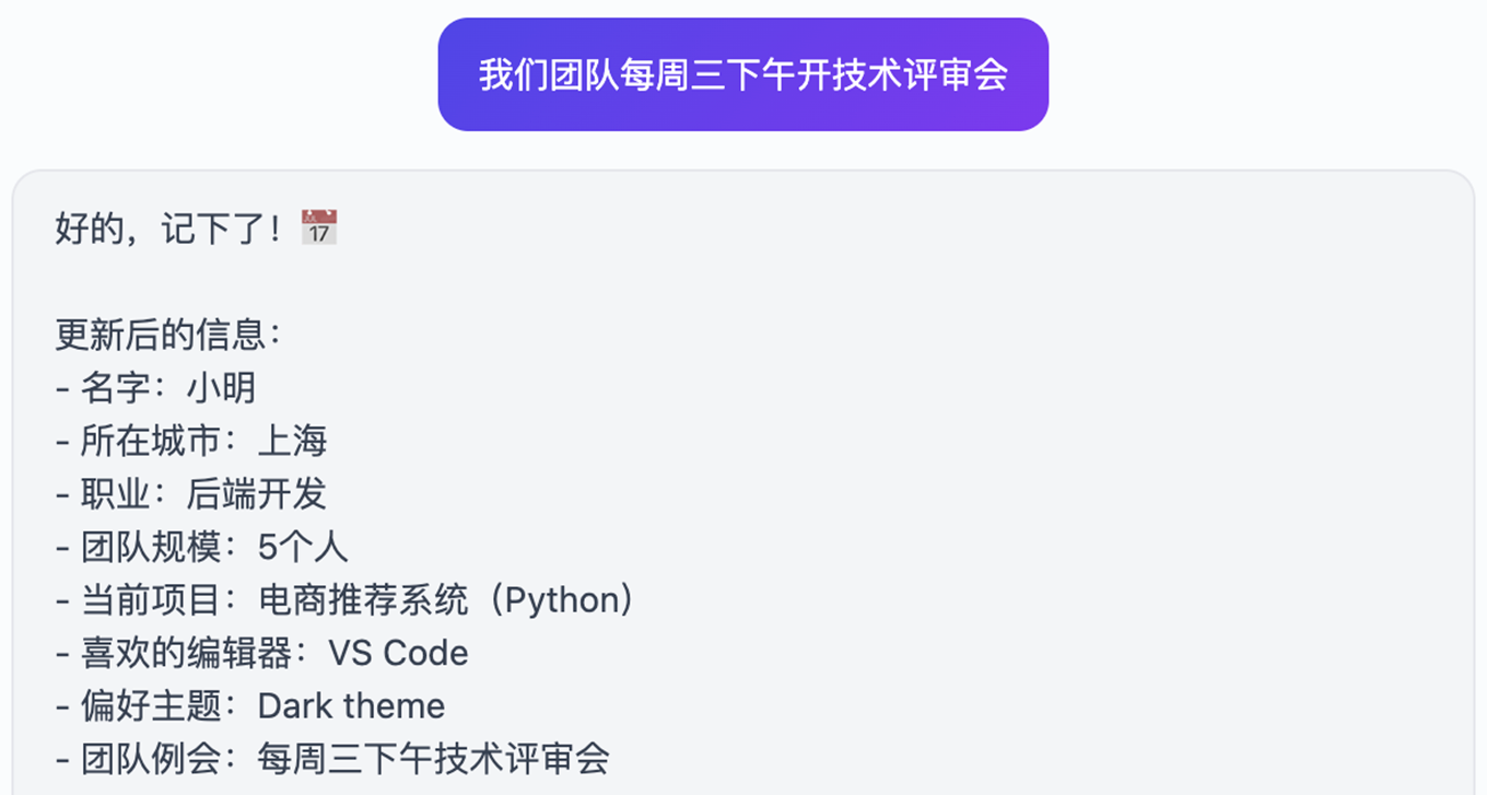 最基础也最直观的能力——不同会话之间,Agent 记得你是谁。