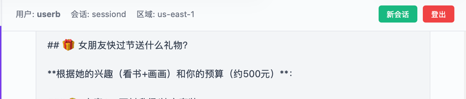 新建会话,这里Session ID 变成 session2。新会话中查询之前的会话内容。