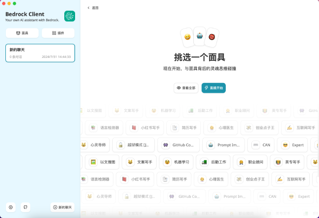 Sample Client for Amazon Bedrock 是一个开源的桌面应用,可以让使用者无需支付年费或月费,通过 AWS 轻松访问和使用 Amazon Bedrock 中的最新发布的大语言模型,实现低成本的智能创作。本应用为免费使用,您仅需为 Amazon Bedrock 的使用量付费。