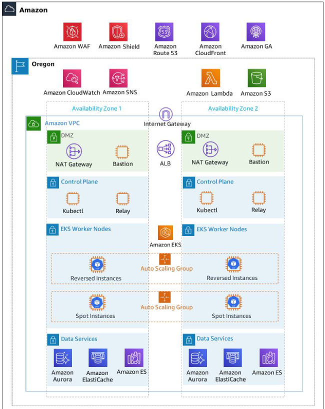 SHOPLINE 基于亚马逊云科技的架构示意图