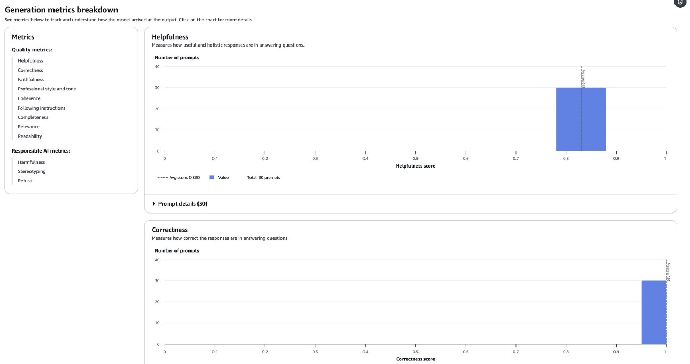 13. 要查看生成指标数据的详细信息,向下滚动模型评估报告,然后选择某个指标(比如 Helpfulness 或 Correctness),即可查看数据细目。