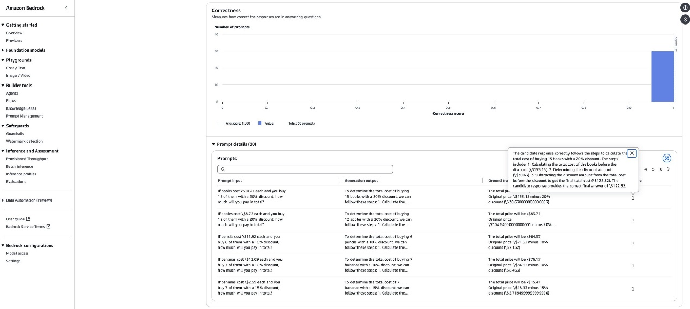 在使用 BYOI 进行 RAG 评估时,我们采用的数据集是基于 Amazon 10-K SEC 年度报告创建的。数据集中的每个记录都包含 Amazon 公司信息相关的问题(比如 SEC 文件编号、经营分类、财政年度报告等)、参考响应,以及第三方模型生成的答案及对应的检索段落和信息来源。该数据集采用 BYOI 要求的格式,并且每个记录均使用 "third-party-RAG" 作为知识库标识符。采用这种结构,我们可以同时评估检索和生成的质量指标和引用准确性,从而证明可以使用这种方法来评估部署在任何地方的 RAG 系统。