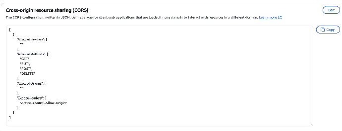 - 已为 S3 存储桶启用跨域资源共享 (CORS)