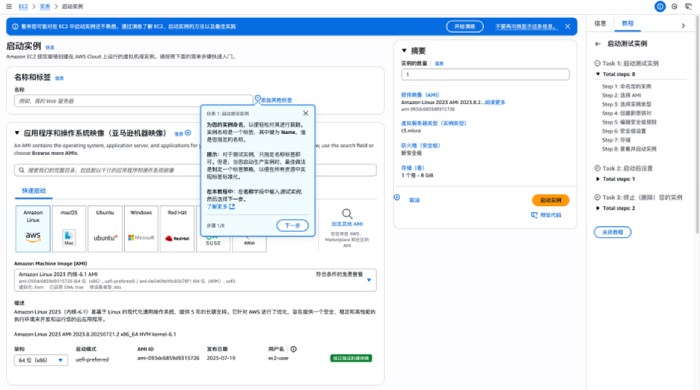 例如,对话框提示“为您的实例命名”,是个简易教程,分 8 个步骤,分布介绍如何命名。