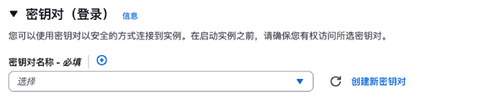 选择创建密钥对,要确保下载并安全的存储私钥。然后,从密钥对名称下拉列表中选择密钥对。