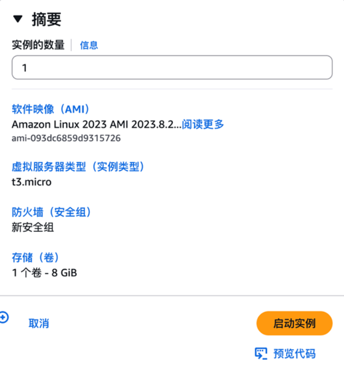 在启动实例之前,可以在摘要面板中查看高级配置。
