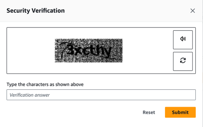 接下来,页面弹出对话框,要求进行 Security Verification (安全验证), 在操作 Type the characters as shown above (输入上面显示的字符) 后,点击 Submit(确认)继续下一步。