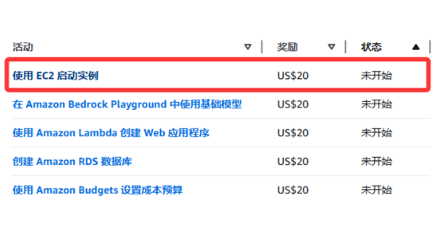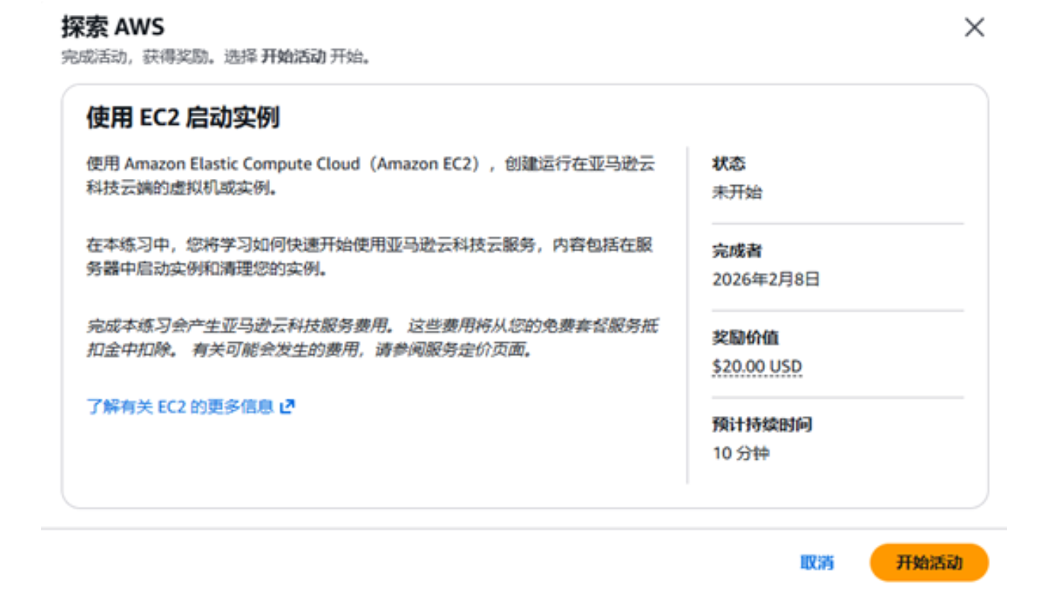 本教程的任务是:学习如何使用 EC2 启动实例,并获得 20 美元的服务抵扣金。