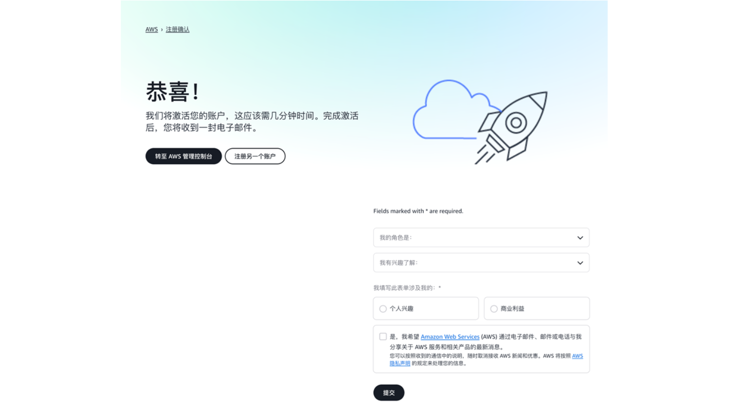 第二步 注册亚马逊云科技新用户