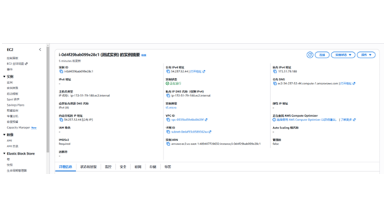 *注意:终止(删除)实例后,该实例存储在 EBS 卷上的数据都将丢失。