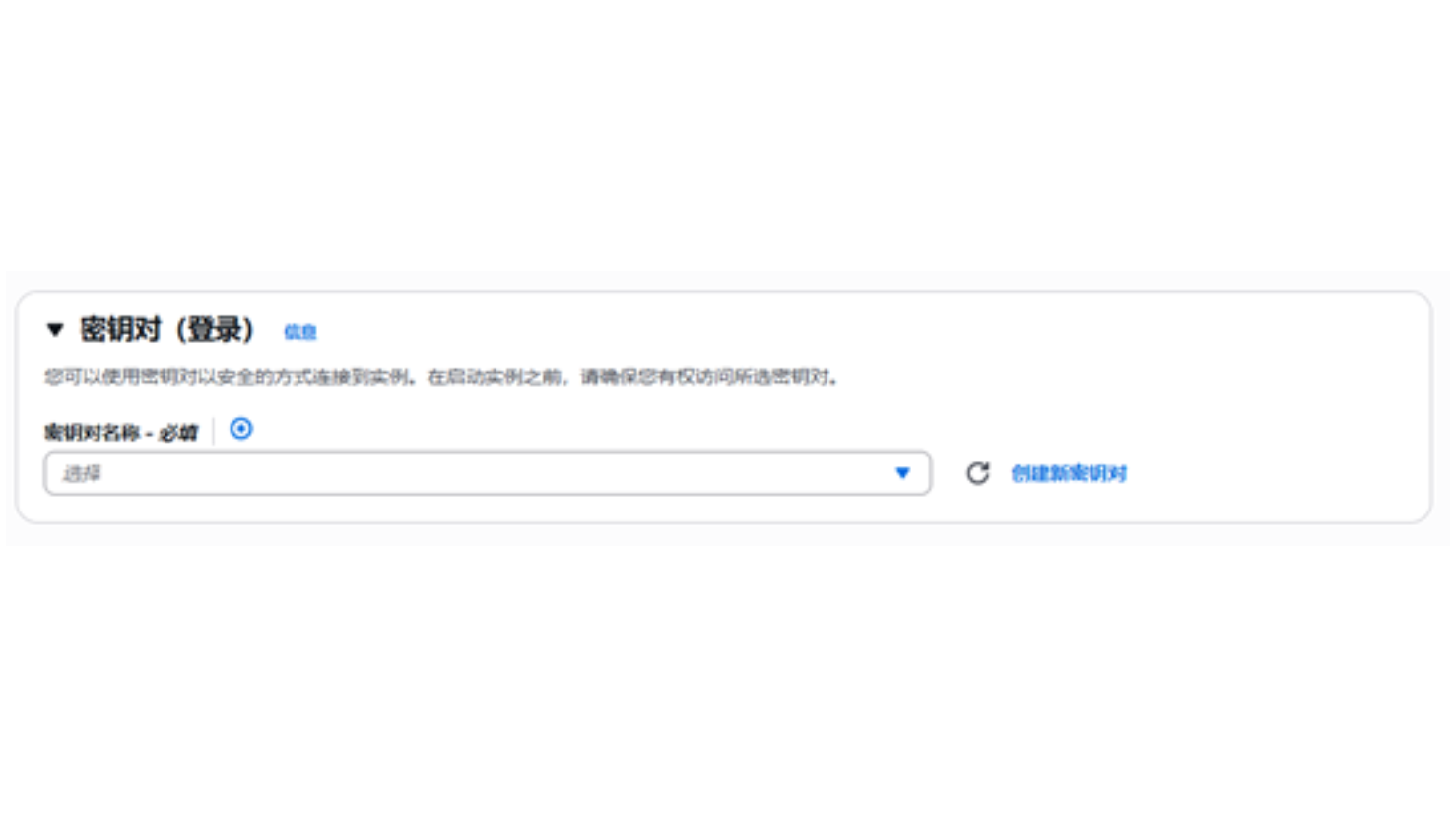 选择创建密钥对,要确保下载并安全的存储私钥。然后,从密钥对名称下拉列表中选择密钥对。