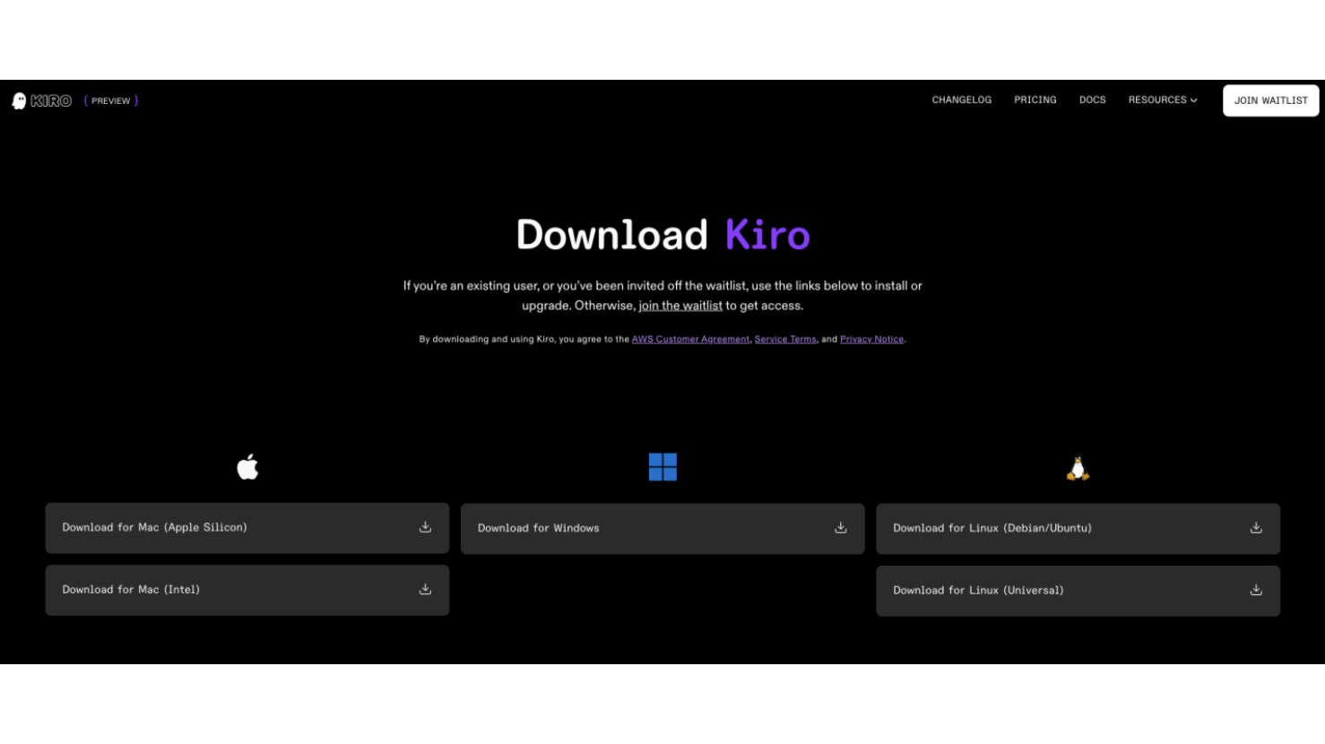 - 在您的浏览器中打开 https://kiro.dev/downloads/