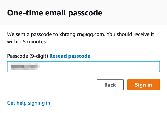 3. 输入您的电子邮件地址并点击 Send passcode / 发送密码