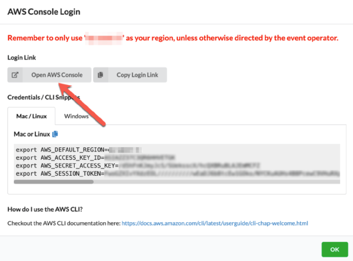 6. 在打开的页面中点击 Open AWS Console