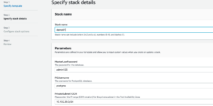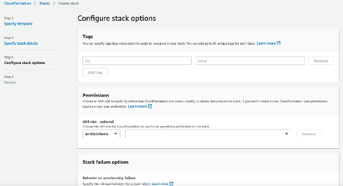 - 输入 CloudFormation 堆栈任务名称