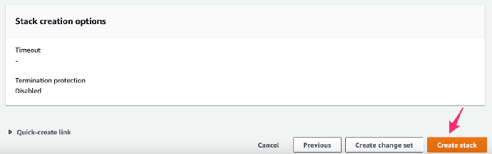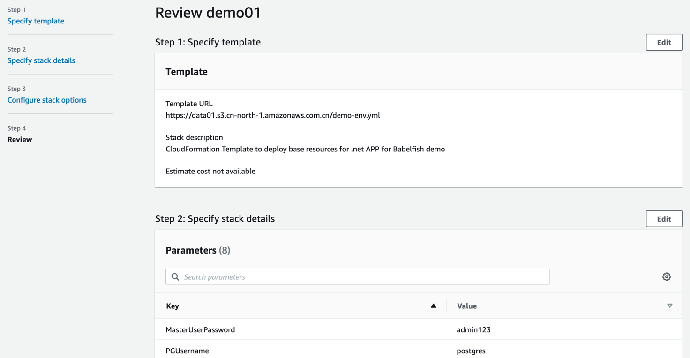 - 检查相关参数,并点击“Create stack”