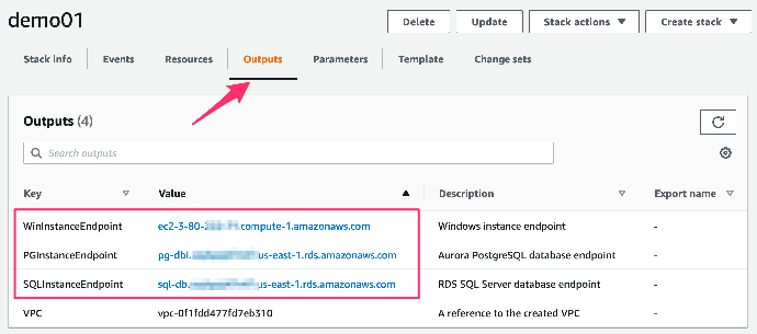 - 连接地址:查看stack中输出的 WinInstanceEndpoint 信息