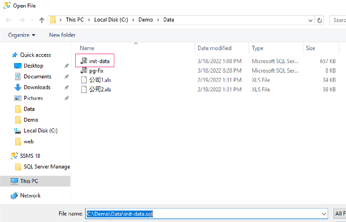 4 选择“C:\Demo\Data\init-data”文件打开