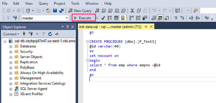 - 登陆后选择 master 数据库,点击鼠标右键,打开一个新的查询