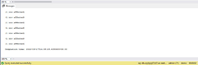 运行后显示插入记录数和执行时间
