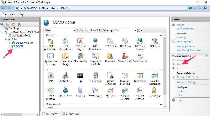 8. 在 IIS 管理中重新启动 DEMO 站点并登陆测试