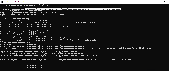 .\BabelfishCompass.bat demo-report C:\Users\Administrator\Documents\script.sql -reportoption xref - 命令执行后生成报告并自动打开浏览器显示报告