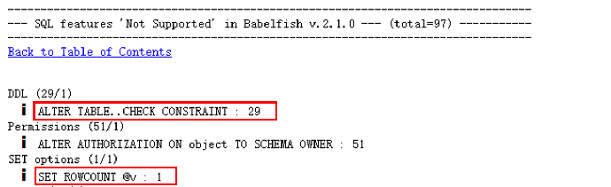 错误:“'ALTER TABLE WITH [NO]CHECK ADD' is not currently supported in Babelfish.”此错误即 Babelfish Compass 评估提示的兼容性问题之一