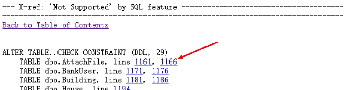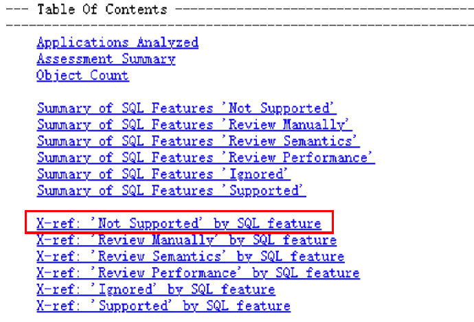 - 回到报告目录中,选择“X-ref: 'Not Supported' by SQL feature"