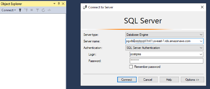 1. 使用 SQL Server Management Studio 连接 Aurora for PostgreSQL 实例