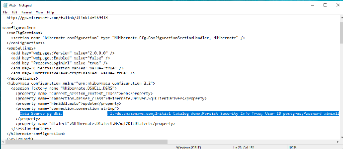 - 在 23 行修改数据库连接设置为 Aurora for PostgreSQL