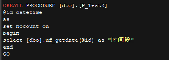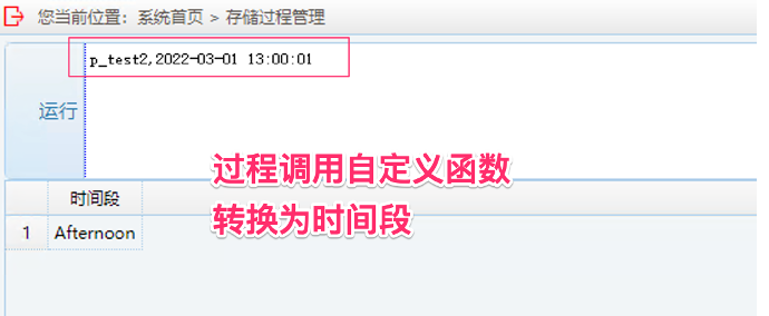 3. 运行自定义函数兼容测试:输入 p_test2, 时间日期格式参数
