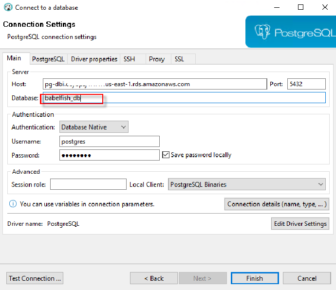 - 登陆的数据库选择 babelfish_db