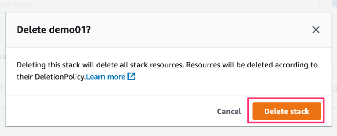 2. 在系统提示时,选择 Delete stack (删除堆栈)