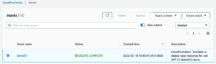 3. 等待大约 10分 钟后,查看堆栈信息显示删除成功栈,此实验正式完成。