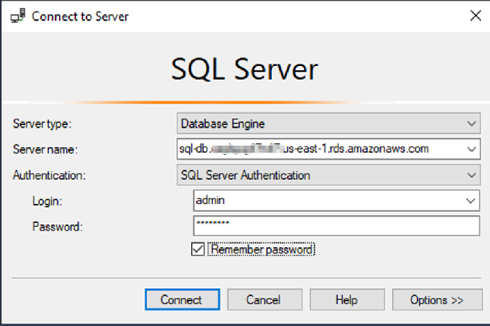 2. 在远程桌面使用SQL Server Management Studio (SSMS) 登陆RDS SQL Servers