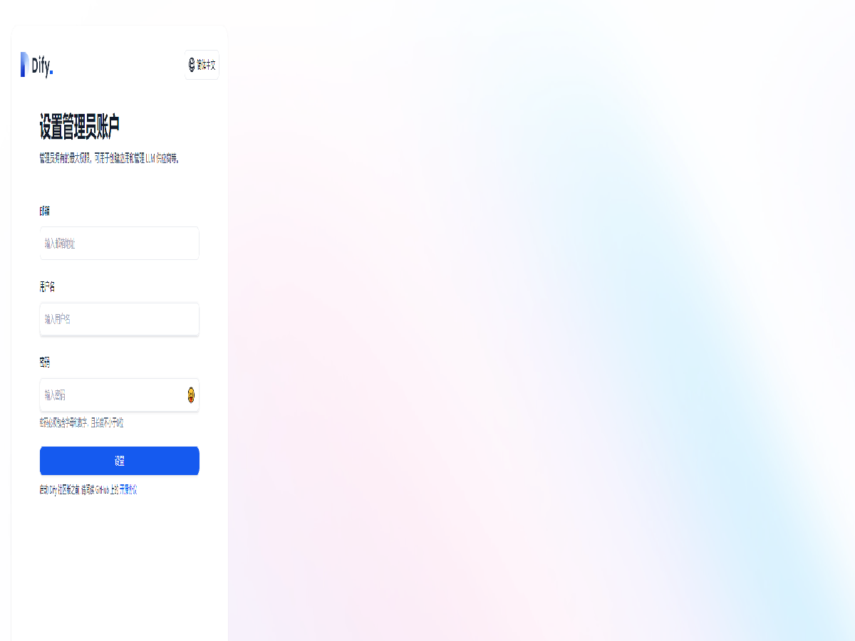 使用浏览器访问 http://{公有IPv4地址},即可看到 Dify 设置界面