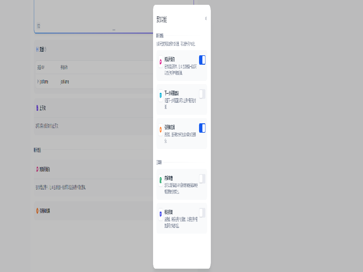 点击左下的 + 添加功能 ,打开对话开场白设置,