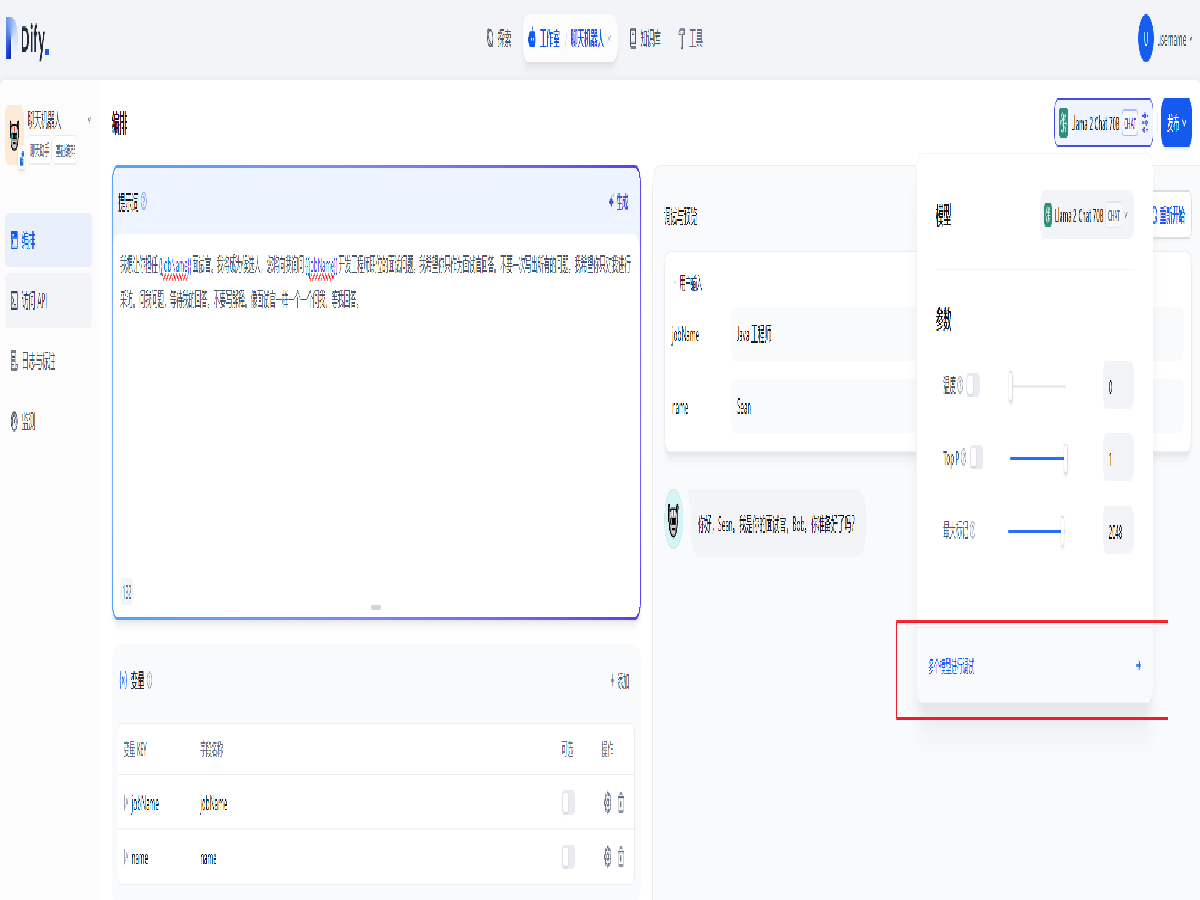 同样,可以点击右上角的模型名称来更换模型并微调参数。