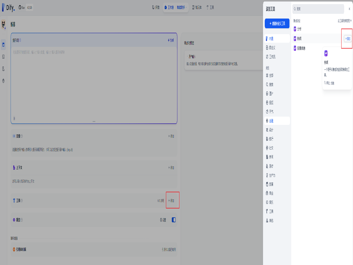 创建一个聊天应用并在上下文中添加刚刚创建的知识库。添加提示词并提出问题,可以看到模型在知识库里面查找了内容后回答了我们提出的问题。